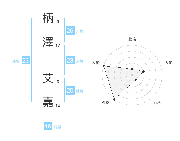 柄澤 艾嘉さんを姓名の画数から五運を鑑定