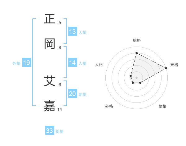 正岡 艾嘉さんの天格は13画の5点!