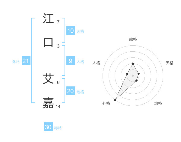 江口 艾嘉さんの外格は21画の5点!