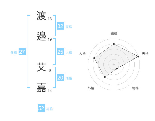 渡邉 艾嘉さんを姓名の画数から五運を鑑定