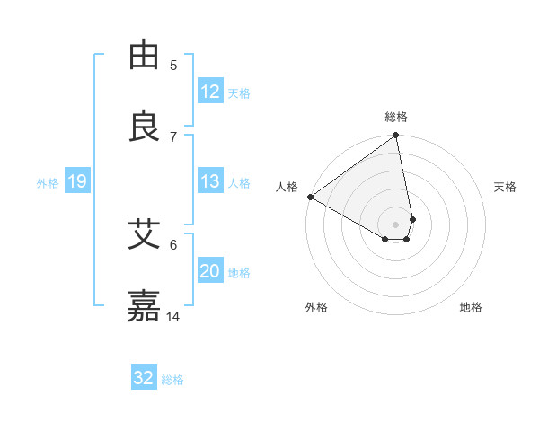 由良 艾嘉さんを姓名の画数から五運を鑑定
