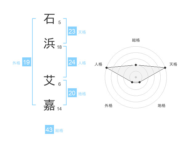 石浜 艾嘉さんの天格は23画の5点!