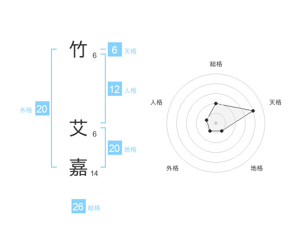 竹 艾嘉さんを姓名の画数から五運を鑑定