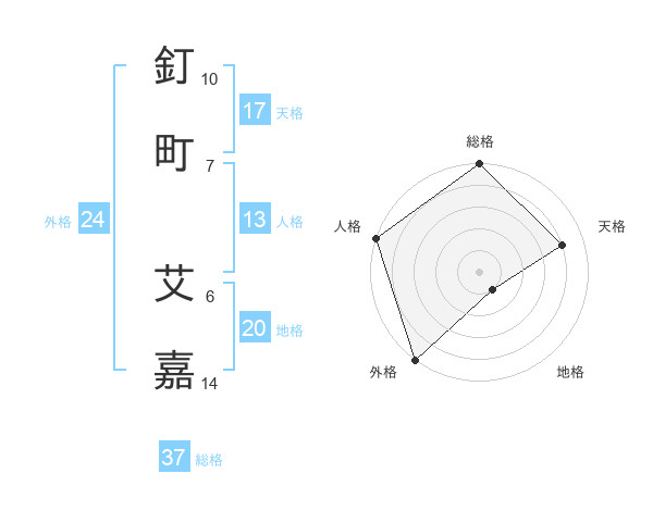 釘町 艾嘉さんを姓名の画数から五運を鑑定
