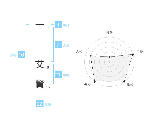 一 艾賢さんの総格は22画の1点!
