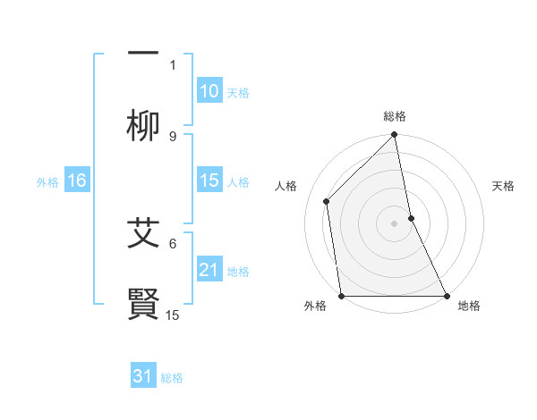 一柳 艾賢さんの総格は31画の5点!