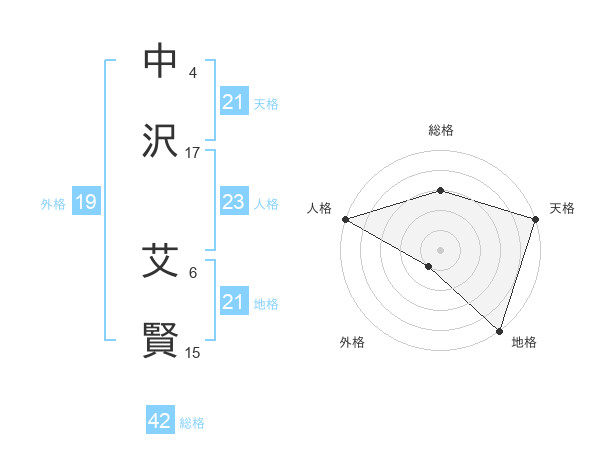 中沢 艾賢さんを姓名の画数から五運を鑑定