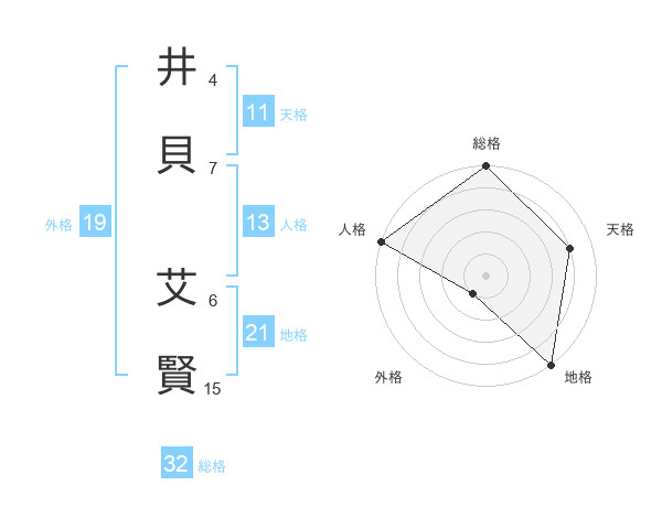 井貝 艾賢さんを姓名の画数から五運を鑑定
