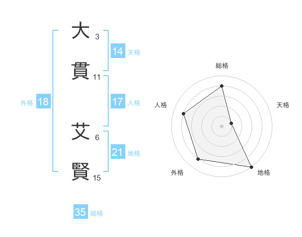 大貫 艾賢さんを姓名の画数から五運を鑑定