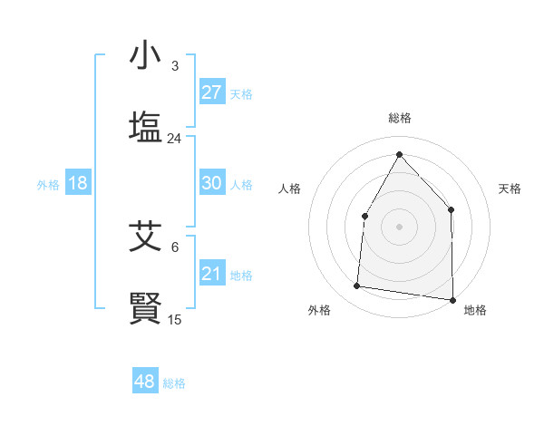 小塩 艾賢さんを姓名の画数から五運を鑑定