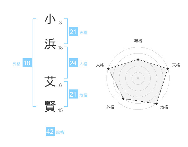 小浜 艾賢さんを姓名の画数から五運を鑑定