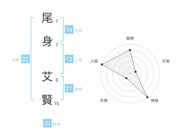 尾身 艾賢さんの総格は35画の4点!