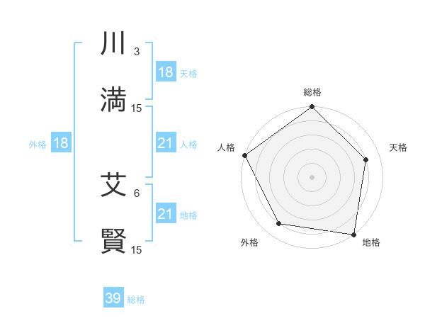 川満 艾賢さんを姓名の画数から五運を鑑定