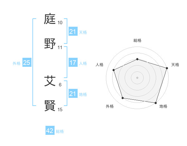 庭野 艾賢さんの地格は21画の5点!