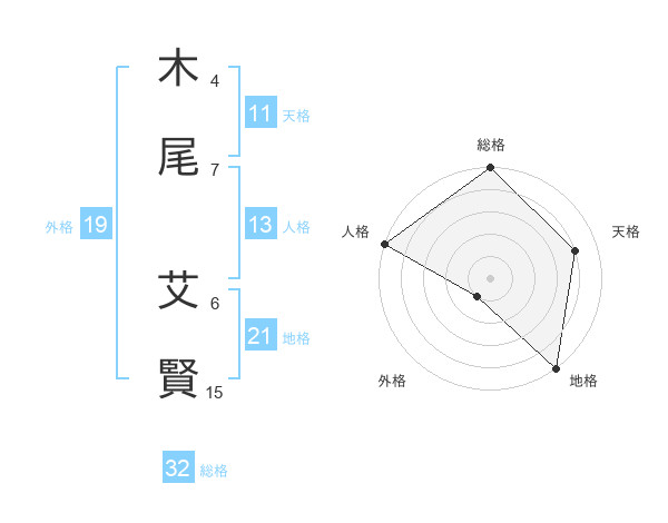 木尾 艾賢さんを姓名の画数から五運を鑑定