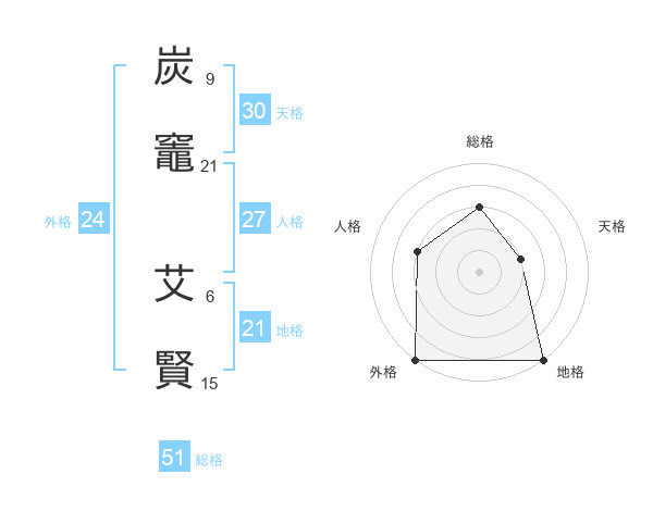 炭竈 艾賢さんの総格は51画の3点!