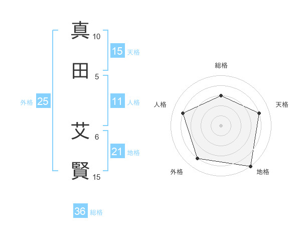 真田 艾賢さんの天格は15画の4点!