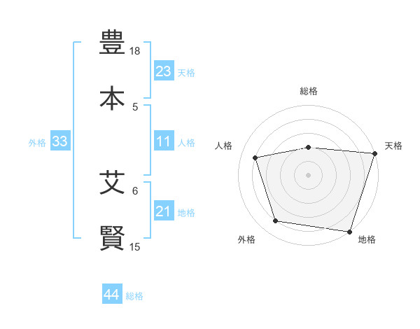 豊本 艾賢さんを姓名の画数から五運を鑑定