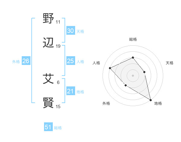 野辺 艾賢さんを姓名の画数から五運を鑑定