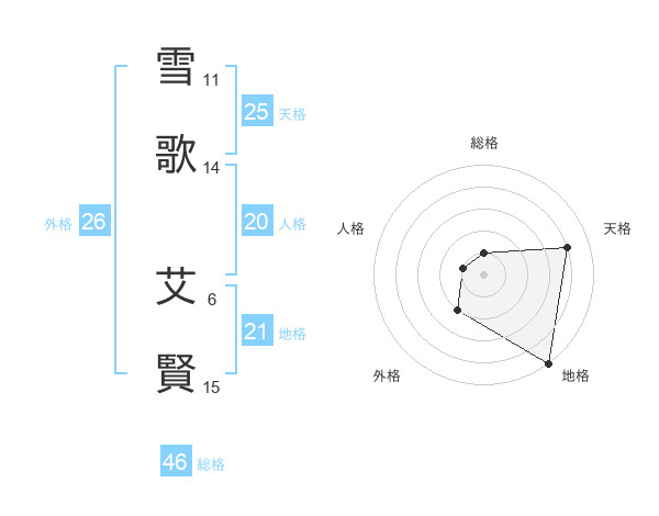 雪歌 艾賢さんを姓名の画数から五運を鑑定