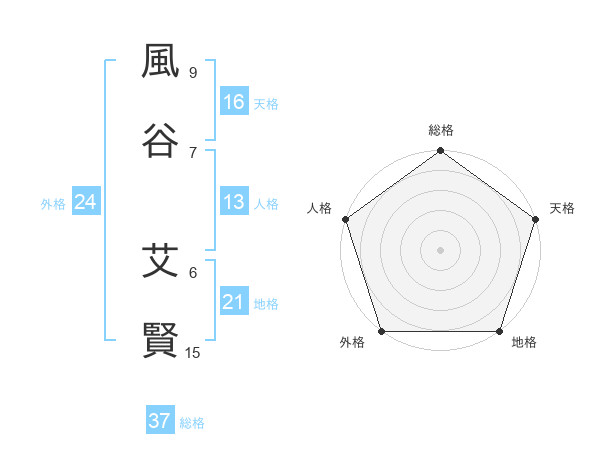 風谷 艾賢さんの総格は37画の5点!
