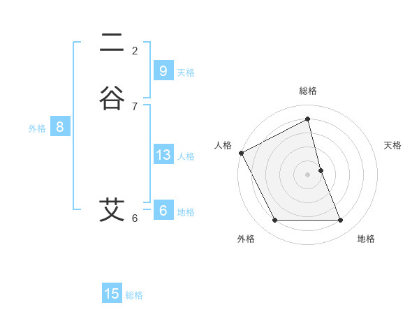 二谷 艾さんの総格は15画の4点!