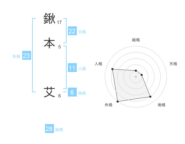 鍬本 艾さんの外格は23画の5点!