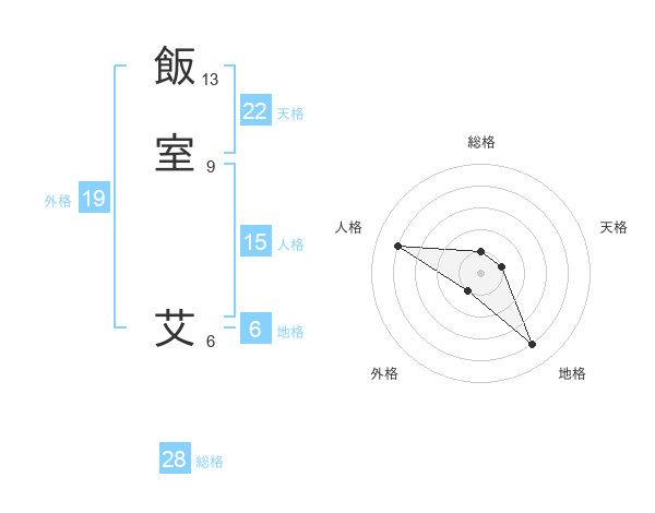 飯室 艾さんの総格は28画の1点!