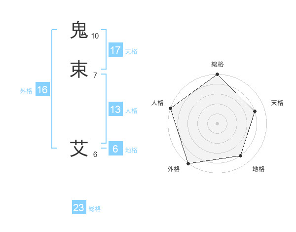 鬼束 艾さんの総格は23画の5点!