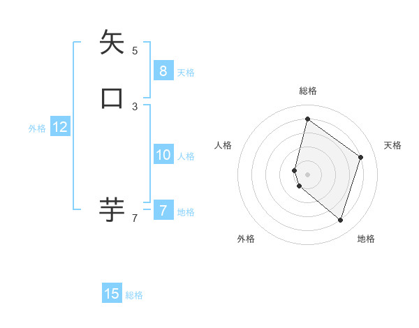 矢口 芋さんの総格は15画の4点!