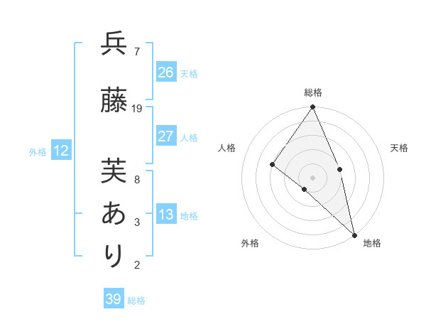 兵藤 芙ありさんを姓名の画数から五運を鑑定