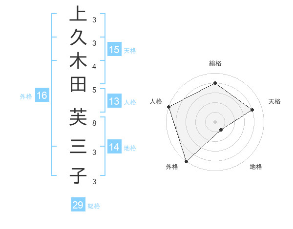 上久木田 芙三子さんを姓名の画数から五運を鑑定