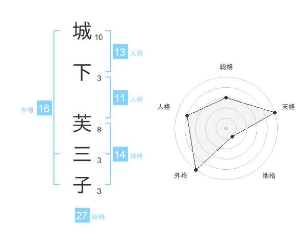 城下 芙三子さんを姓名の画数から五運を鑑定
