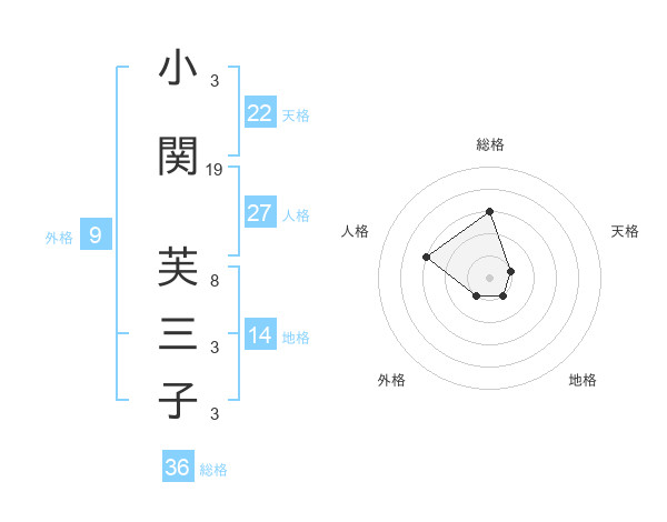 小関 芙三子さんを姓名の画数から五運を鑑定
