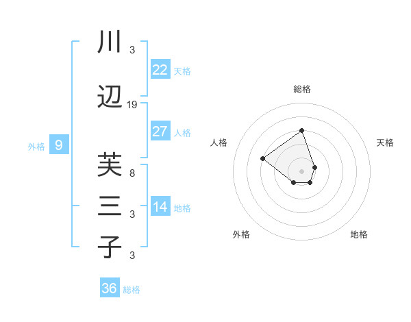 川辺 芙三子さんを姓名の画数から五運を鑑定