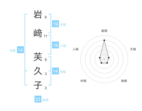 岩﨑 芙久子さんを姓名の画数から五運を鑑定