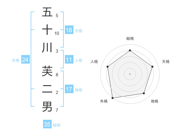 五十川 芙二男さんを姓名の画数から五運を鑑定
