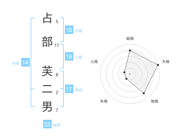 占部 芙二男さんの天格は16画の5点!