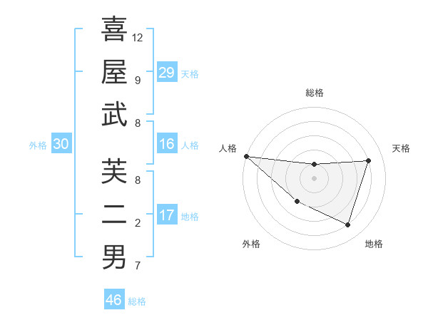 喜屋武 芙二男さんを姓名の画数から五運を鑑定