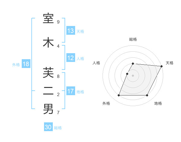 室木 芙二男さんの天格は13画の5点!