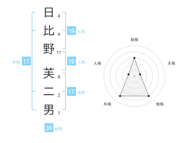 日比野 芙二男さんを姓名の画数から五運を鑑定