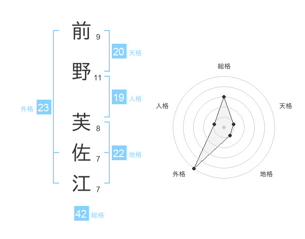 前野 芙佐江さんの総格は42画の3点!