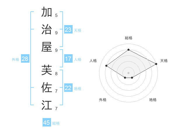 加治屋 芙佐江さんの天格は23画の5点