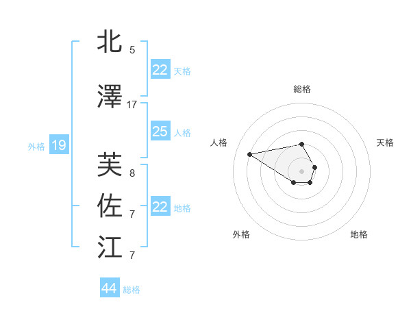 北澤 芙佐江さんを姓名の画数から五運を鑑定