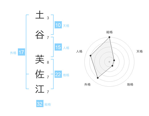 土谷 芙佐江さんを姓名の画数から五運を鑑定