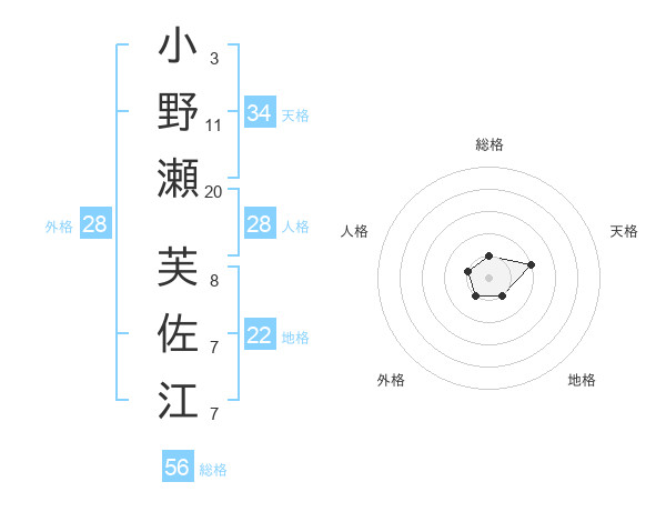 小野瀬 芙佐江さんの総格は56画の1点!
