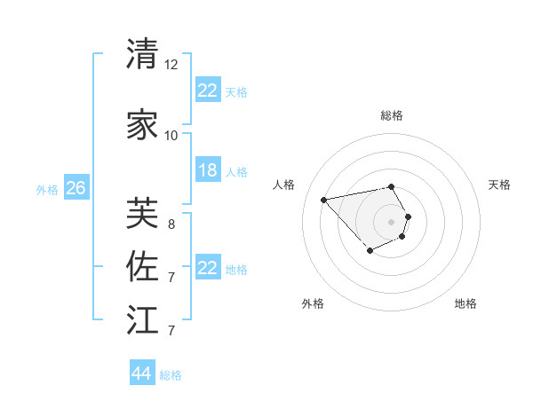 清家 芙佐江さんの総格は44画の2点!