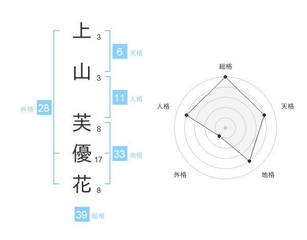 上山 芙優花さんを姓名の画数から五運を鑑定