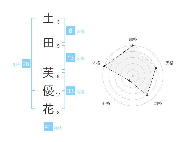 土田 芙優花さんを姓名の画数から五運を鑑定