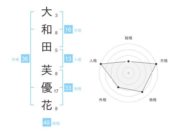 大和田 芙優花さんの天格は16画の5点!